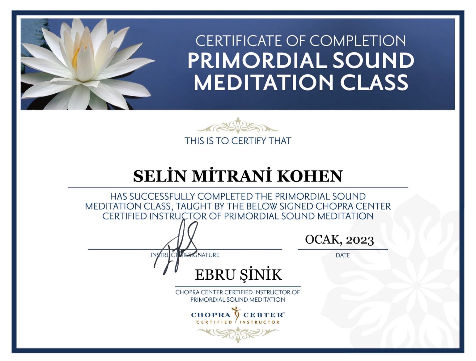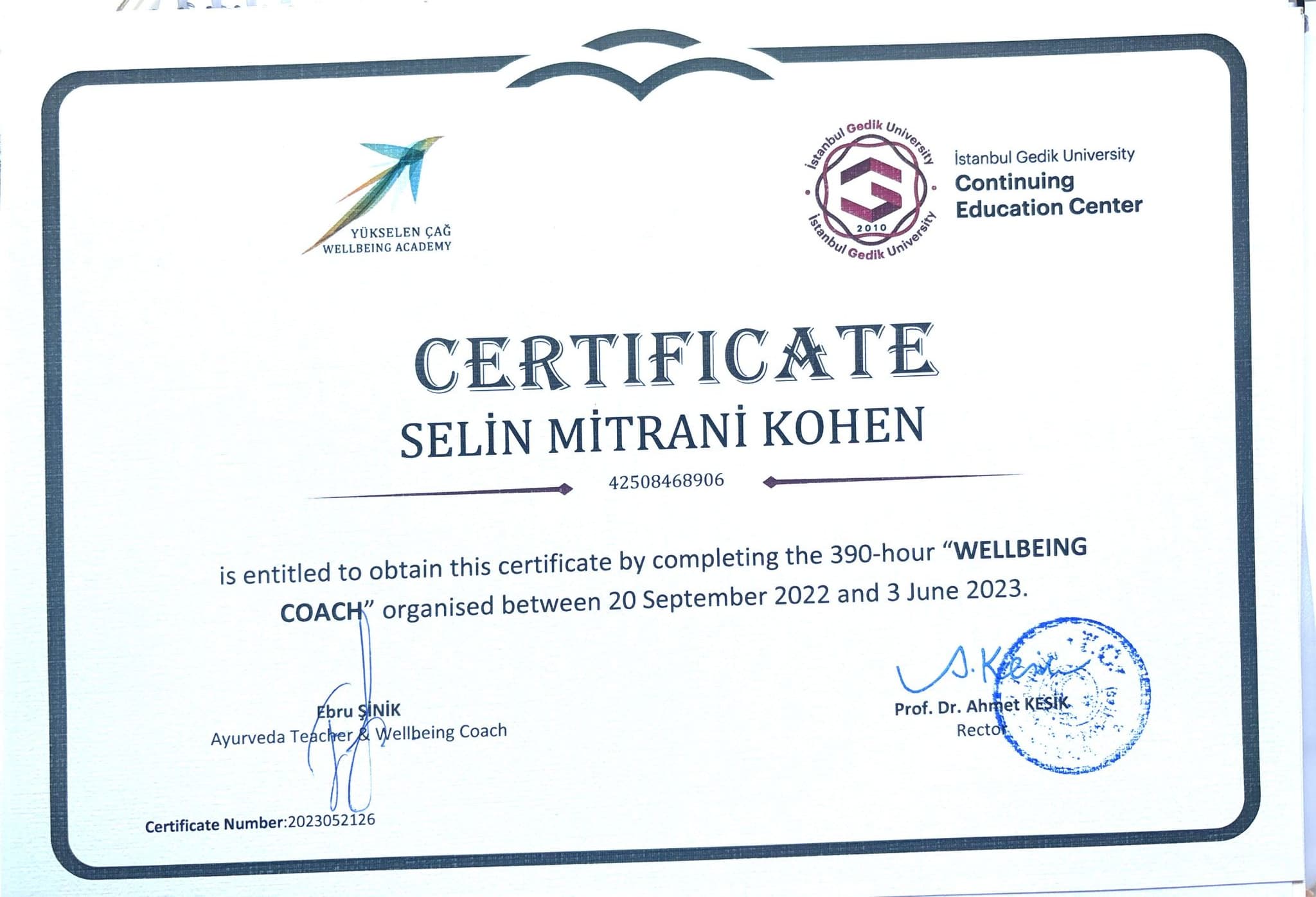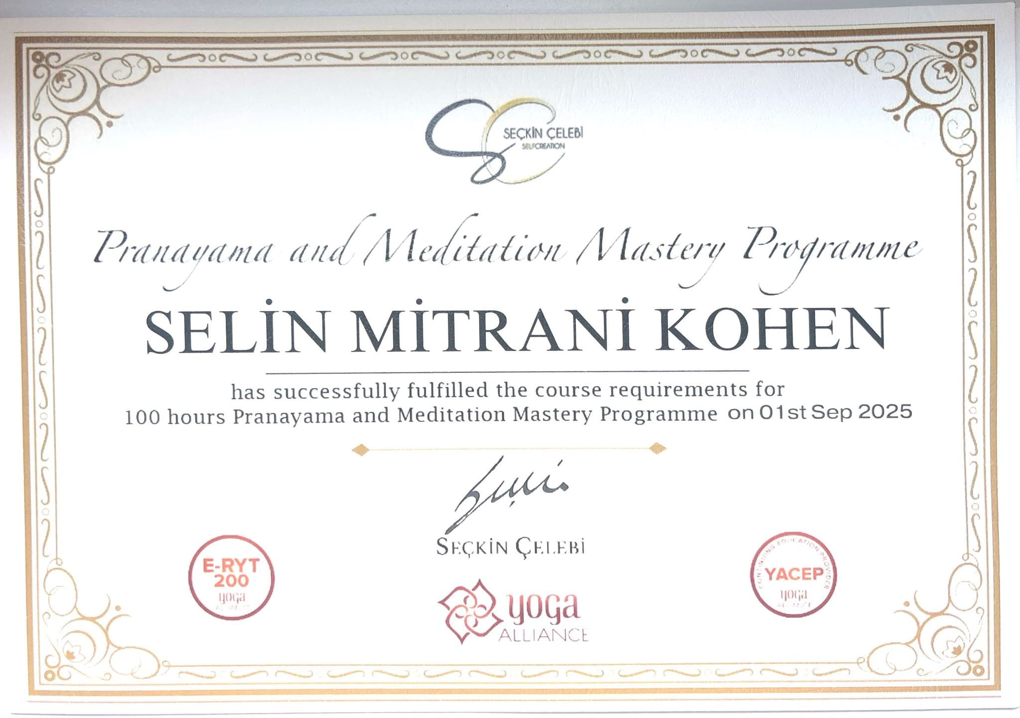 Bu alandaki eğitim yolculuğuna Gedik Üniversitesi 300 saatlik Wellbeing Uzmanlığı programıyla başlamış; Chopra Center sertifikalı meditasyon uzmanlığı, Yoga Alliance E-RYT® 200 ve YACEP® eğitmenlik sertifikaları ile biyointegratif nefes terapistliği dahil olmak üzere birçok eğitim programını tamamlamıştır.